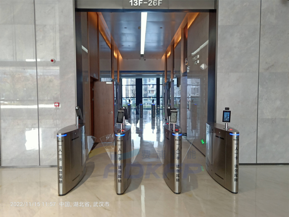大廈采用費(fèi)浦"ADKFP"門禁系統(tǒng),12個人員通道閘機(jī)選用費(fèi)浦ADK-YZ600翼閘,橢圓形外觀,圓滑的曲面加上臺面的線條美,優(yōu)雅而不失穩(wěn)重。翼閘電機(jī)采用直流伺服驅(qū)動技術(shù),使用壽命1000萬次以上,超低噪音,8對紅外檢測,同時具有高效防尾隨,雙重防夾功能,每分鐘通過人數(shù)達(dá)35人以上。