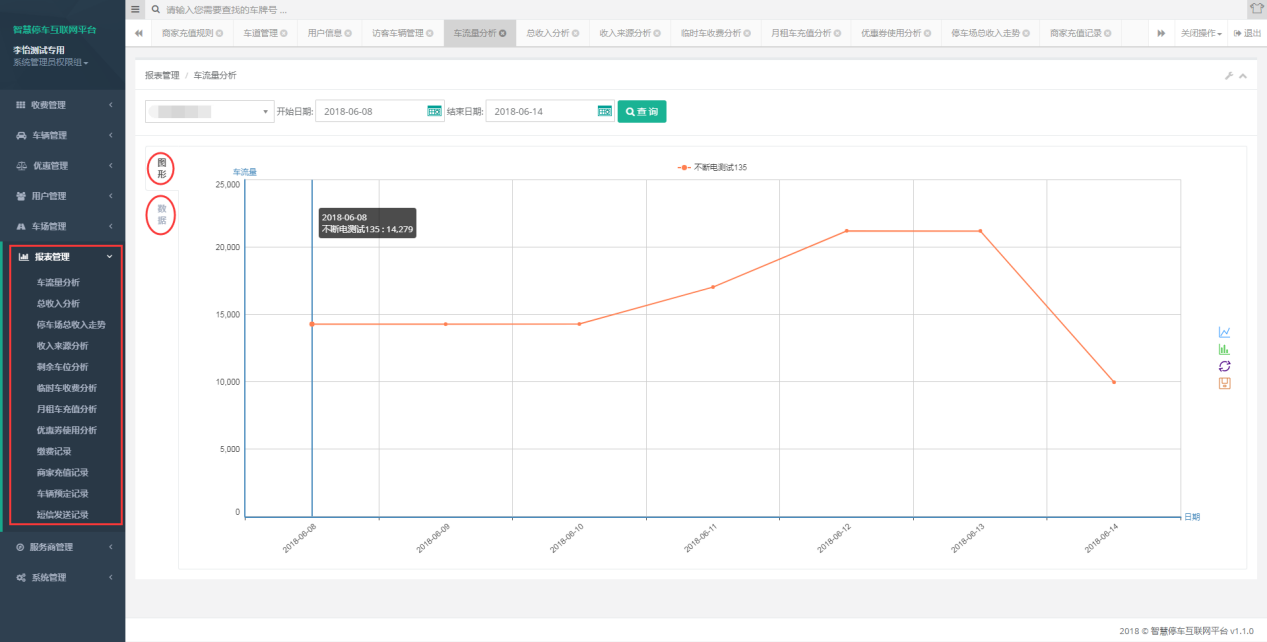 10、基于智慧停車平臺(tái)管理技術(shù),管理方可對(duì)停車場的運(yùn)營狀態(tài)實(shí)時(shí)檢測 ,對(duì)多個(gè)停車場數(shù)據(jù)分析,財(cái)務(wù)報(bào)表智能分析,幫助管理者做出重大決策。